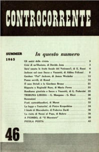 sempre vicini m'accorsi ch'egli era un ricco. li mio primo incontro con Jackson fu nella redazione del "Globe". Ero andato a trovare Frank Sibley, il venerabile redattore che aveva dimostrato simpatie per iniziative liberali sin dal 1912 e cioè ai tempi dello sciopero di Lawrence di cui egli s'era molto interessato ed aveva sempre simpatizzato con i lavoratori. Nel 1921, per tutta la durata del processo di Dedham, egli mantenne la stessa attitudine. C'imbattevamo spesso nel tramvay che ci conduceva ogni mattina al tribunale ed in queste occasioni soleva esprimere le sue opinioni. Quando nel comitato sentimmo il bisogno di un esperto in materia di pubblicità mi rivolsi a Sibley il quale mi assicurò che in due o tre giorni egli ne avrebbe provveduto. Infatti pochi giorni dopo, negli uffici del "Globe" incontrai Jackson per la prima volta. La settimana seguente venne nella mia tipografia, allora al No. 88 Salem Street e da Il andammo nella sede del comitato ad Hanover Street. Da qualche tempo giornalisti venivano spesso nei nostri uffici ma non avevano mal dimostrato un grande interesse per la nostra causa, anzi, spesso prendevano pose, un atteggiamento antagonistico. Eravamo, pensavano loro, un branco di vociferanti italiani o peggio ancora, dei sovversivi. Dopo l'arrivo di Jackson notai che a poco a poco, questo lor modo di vedere cominciò a cambiare e più. tardi si trasformò in vive simpatie verso noi e per il nostro lavoro. Ma ... diciamolo pure: Jackson sapeva bene come attirarseli. Spesso invitava loro, tre o quattro alla volta, a pranzo nei locali ristoranti ed era sempre lui a saldarne il conto. In breve tempo incominciò a dare tutto se stesso al lavoro. Dimenticò Il "Giobe", abbandonò lo svago; spesso dimenticava la famiglia. Egli si sentiva felice, godeva di essere fra noi nel comitato. Non poche volte mi disse ch'egli si sentiva d'aver scoperto un altro mondo, in mezzo a noi - un mondo più. bello. Lavorava tenacemente per la pubblicità di stampa, per il "Bollettino" e continuava a dare espanslvamente il suo denaro. Ho già menzionato la generosità di J ackson. Egli spese una vera fortuna per la difesa di Sacco e Vanzetti. Non si seppe mai precisamente, ma io ritengo ch'egli spese cinquantamila dollari-e forse più.. Quella sua grande bontà; quella generosità senza pari strari1>ava spesso su tutto ciò che sentiva ed amava. Il 9 aprile 1927 il giudice passò la sentenza di morte su Sacco e vanzetti. Dopo semplici ma emozionanti discorsi che i due innocenti pronunciarono in corte, noi, armati di tanto materiale, cominciammo a martellare senza tregua, concentrando tutti i nostri sforzi per una campagna onde ottenere una revisione del processo, che in effetto significava un nuovo processo. Rimanevano solo tre mesi aUa data per l'esecuzione ch'era stata fissata per la settimana del 10 luglio. La maggioranza della stampa era in nostro favore. Ogni giorno venivano negli uffici del comitato da 50 a 100 giornalisti da ogni parte del paese. Finalmente il governatore Fuller, dietro influenza di elementi liberali, amici del corpo di difesa, nominò quella che ancora oggi è conosciuta come la "Lowell Commisslon". J ackson, come pure Frankfurter ed altri intellettuali gradirono la nomina di questo comitato. Jackson aveva fede in Lowell. Io rimasi pessimista. Dopo tutto lo trascinavo con me un'esperienza di ben sette anni. La prima fase della nostra nuova campagna era quella d'ottenere che le udienze dinanzi al comitato governatoriale venissero aperte al pubblico. E fu su ciò che J ackson fece un lavoro più. che magnitlco per dare maggior enfasi alla mèta che si voleva raggiungere. Egli scrisse allora sul "Bollettino" :-"Ed ora, con meno di due settimane ancora da vivere questi due uomini anelanti, benevoli ed altruisti come ben pochi, vedono la loro sorte sigillata in camere chiuse e senza neppure la presenza dell'avvocato difensore per svelare tutte le menzogne che vengono tramate intorno a loro. Ciò che essi chiedono o hanno mal chiesto, è un'imparziale rivista del processo. Non l'hanno mal ottenuto come un'esaminazione del verbale e delle dichiarazioni legali (affidavits) e ciò prova il disgustevole e maligno pregiudizio del giudice Thayer oltre ad innumerevoli altri fatti. E' certo che essi non stanno ricevendo un'imparziale esamlnazione dei fatti nella camera chiusa del governatore. La verità, in un caso come questo, deve uscire in pubblico, non in privato". Come ben si sa non avemmo successo. Le udienze continuarono dietro porte chiuse. In quegli ultimi giorni noi andammo da sconfitta a sconfitta In ogni tentativo 10 CONTROCORRENTE - Boston, Summer 1965