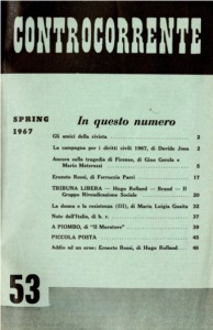 ~ONTBO~O SPRING 1967 , In questo numero Gli amici della rivista .............................. . 2 La campagna per i diritti civili 1967, di Davide Jona 2 Ancora sulla tragedia di Firenze, di Gino Gerola e Mario Materassi . . . . . . . . . . . . . . . . . . . . . . . . . . . . . . . . S Ernesto Rossi, di Ferruccio Parri . . . . . . . . . . . . . . . . . . . . 17 TRIBUNA LIBERA - Hugo Rolland - Brand - Il Gruppo Rivendicazione Sociale . . . . . . . . . . . . . . . . . . 20 La donna e la resistenza (III), di Maria Luigia Guaita 32 Note dall'Italia, di h. r. . . . . . . . . . . . . . . . . . . . . . . . . . . . . . . 37 A PIOMBO, di "Il Muratore" . . . . . . . . . . . . . . . . . . . . . . . . 39 PICCOLA POSTA .................................. 45 Addio ad un eroe: Ernesto Rossi, di Hugo Rolland.... 48