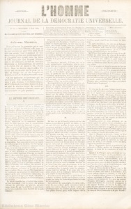 -SCIENCE.- ' ..... -SOLIDARI'fÉ- ' . • • 1,, • .,. i:• :, ,! • :N1 :?:'î. - MERCREDI, 3 I,L\.I l 854. 1 To\,tes lettres et cùrrt"spo•1danqcs rloivent Gtrc affranchies et \ A~GLETE!l.RE ET CoLo:s ri:s : al!ressécs au bureau de i' Il1:i 1,ncr::.! Un_iver~:llc ~ St-Hélier U_n an, _8shillings ou 10 fran es. (Jersey), 19, Dorset SLeet.-Le~ 1:1anuscnts c1eposcs 1ic s::ron· S:x mois, 1 ~11. o,i 5 fr. PouR L'i:TRANGER : Un an, 1~ f·. sr. Si,; mni~, 0 f·. :2;;. pas rendus. - ÜN' s'Ano;,;:-r; : .\. JaSf!J, 19, Dor,et strt",. - A I' Trois mois, 2 «li. ou 2 fr. 50 c. Lonrlr1•s, &0}, Great Q.:1Pen strLet, Liucoln's-Inu-Fielt:~. - A CHAQUE NUMÉRO : Genève (Suissc),chez:,I. Corsat, libraire, rue Guillaume-Tell. 3 pence ou 6 sous . Tr:Ji,; mJis, ;; fr. 50 c. .--------------------:--------------------------------' ' fJ.. 'f'fi.~ {lliiX .,:~ b~JUill~§, Kou:; prévenons les personnes qui se sonl abonnées au journal l'Homme, soit pour un an, ponr six mois ou ponr trois mois, et ciui n'ont pas encore versé b montant de leur abo1:ne111enqt,u'elles sont instamment priées de s'acquitter sans retard entre les mains de ~tliVI.les ag~nts chez lesquels l"abonnement a été contracté, ou bien de l'enYoyer directement ~t l'administration du journal, à St.-Hélicr (île de Jersey), 19, Dorset Str·,~t. Dans cc dernier cas, il suffira d'adrcs~er soit un manùat sur la poste ou u::1 billet de change sur un des b:rnquie: s de Londres~au nom de NI. Zéno SwrnTOSLAWSKI. On prie également les personnes qui renom·ellcront leur abonnement, d'en envoyer le prix <l'avance à l'adresse indiqu,fo, afin d't~Yiter tout retard dans l'envoi du journal pour le nouveau terme du second sémestre et du troisième trimestre, terme qui commencera le 1er juin prochain. LB DEVOIRRErUBLIC1IN. I. T • t • , _ ·ou-~,s;o1::.~1evsaP1cur,, e , par•ont, opp:·1mes ou d6r1.!i~·11[:s. L2<. roy·wmcs q 11 ne S3 fermeat p:1s dcv,~·?t ilOS m:.,:,.rcs, nç •wus cloa::e;/ q'te le foyer de:=auberges; ailleurs, on nous truqno ainsi q·1c des bL-,s foin es, et .wus ne trouYons P<ls mémo de quoi rL·pos~1u· os ~êtes 1hmscette p:mvre rbpuhlique suis:,e ou VPl'd~ au grn1.d e·ül des princes. E:t bien! plu, q:1e jamais, pourtant, not;:e forcB est grande: car nous sommes uoll seule:.:ent la protcs.tation vivmitc , imnlacahle de la conscience humaine con1r-,' le crime heureux, mais la réconciliation, l'es;,é,:.wce, h pr0hit(~ de-, jours qui viennent. Que se p,isse-t-il en Eui'ope, aujo11~d'!rni? quel est le g:-:mJ souci des intérêts, la pi·éoccup«tion tragique d,~s .lmes t U'cst la guerre; la g·uer:·e qui dé\.1ste IPs champs <le ~<ihour,rni!1e les i·v1?1stries, rasP le~ , illes, épuigc les trésors, verse le s.rng }Hf torrents, la g·uerre qui est la force décha~:iéc et la folie des hasards ! ' · Et, d'où vient ce terfible sinistre? d'une q11erelle de monarchies. Les empereurs n'ayant pu tomber d'accor'd, à propos d'uu tombeau, l'on va s'égorger par toute l'Eu~·ope, et comme les empen•urs voient ro11g·c,on ne sait frop qmrnd cela finira! Jfr:intenmi\ supprimez les füo:1archies, empereurs et rois; désarnwz ces <lieux-monstres qui jou"nt ù la m'>rt; constituez l'Europe en républiques, f't dites-nol'S si les nntiom confédérées, liées l'une ù l'autre, unie.; par l'échani·e, s'amuseraient, l • \ ' , t ' 1• • ' pour une re 1que, a .s eq;orgcr, en r e les, ,1usqn au dernier écu, j usq u' au dernier sang? - En cas de difféfe,id grave, on ir..iit é.!U p,dement commun, au trihui:al s,mverain, aux arbitres. La sentence libellé:, après mùr 0x,mwn pu'>lic, serait garantie par la puiss~Hu:e co'.lecti, e, et la paix ne serait jnm... i.. trouulée. Est-cc que ces PRLDHO:\Dl.ES là ne Y,rncln.icnt pas messieurs les empereurs'? sans cornpter qu'ils nous revieudraient moius cher, et qu'o11en pourrait chang0r, par simple voie d'élE'ction, ainsi que cela se pratique en certaics tribunaux <lecommerce. La thf'orie républicaine, à l'endroit des g·uerres, est donc bien simple : c'est la justice des "rbitres ~'élE'vant du particulier au général, garantie comme bonne foi par la publicité, et sanctionnée par la force colleqtive dans l'intérêt de la paix. commune. Cela est moins g-rnnd, r,eut-être, et surto~it In')Ïns royal Ei ue de voir des armées, b·mnièr,'s au veat, défiler <'n lignes profo!l'les, se rue;: sous la mitraille, l'une conti:e l'autre, s éve:1trer ù la bavo:1rn~tte et mom·ir en criant, comme les g-ladiat('~m, : " Saint à César! " _.M:.lÎsnous .1c crnyo:i-; p~i:,, e~1 ,., 't , t 'f ·t t Ye:-1te,que IC e,.1:--sp:·;;sen s~Jlt ortJa 011--..: c.e ces merveilleux spe,:Lw1es rlu cadavre et cle la rni·12 : L2 monde a quelque peu march0 depuis J,, <livi.1 Agamemnon, et, dès qu'ils savent le,, pui-;-,_1~1sc fécondes <lela paix, les int~i-êts ne soat pins ù la bubille. La conscie!1Ce génfrale, d'ailleurs, est, en ce pnint, profondément r0public:üne; elle ne comprend plus que des penp1cs entiers soient traîn0s ù l'abattoir poPr l'r:mhition ou l'orgueil de quelques làches qui, du fond de leurs palais, donne it le signat de ces boucheries ; pour eilc, comme pour Hous, la guerre est un8 des formes hidt'uses de l':issassiaat, un de ces jetG de la fJ:-ce qui pBiP:ent • emporter les ci, il isation~,; les plus ibrissant<'s, •rne lutte aveugle, une insulte à notre espèce fai~f' i:1tel'.igente et lihrc, un m2 n<rc soriai enfin ! Le respect de la vie q ni est déjù, qui s,'ra surtout un~) <les grandes lojs r.10ï::i.tcsdes so.:i;,'és modernes, le respect, l'iirriolabilité (le 1.t vie des frères est l'esseuce et comme la fleur <ln <log-me uouven.u, sorti de ce p'11~sm1tdix- 1rniti~:me siède où naqu:re1t tant de vérit{,s hum"lincs et où tombèrent tant <le vieilles idotltries. L'esprit des masces est, partout, im);<:g-aé de ces no:)les s-entimf'ilts qui annonceat le::; temps hou veau,, comme l'aube le jour: l'opi·'ion se n-<ire des armée<;comme de;:; gibets,