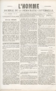 parle de nommer le général Daumas ambassadeur à Constantinople. Ces officiers seraient tous deux très aptes à organiser en T'urq nie-comme ils l'ont fait en Algérie-des troupes ré~ulières avec les éléments guerriers de la levée en masse musulmane. -Le général Darag-uay-d'Hilliers a exigé du Sultan, en faveur des Hellènes catltoliques, le privilège de n'être pas soumis au décret d'expulsion qui frappe leurs compatriotes grecs: il s'est emporté jusqu'à df'mander ses passeports, et il est question à Paris de lui donner un commandement dans l'armée pour le dédommager de sa destitution prochaine des fonctions d'ambassadeur ..... L' emper'tur Napoléon III veut avoir, aussi, sa Garde impériale; le J'Vlnniteur en a décreté l'organisation ; il n'est pas encore question de la solde, ni de l'uniforme. En outre,- et ceci rentre dans l'ancien régime royaliste-il aura une Garde-ducorps, les Cent~gardes à cheval, au nombre de cent cinquante, commandés par le colonel Lepic. Un camp de cent mille hommes va être formé vers le Pas-de-Calais (à Boulogne, sans doute), en destination, dit-on, de la Baltique(?) ... Un autre camp, de cinqua·-te mille homm2!'-, à Marseille, formP,ra la réserve de l'armée d'Orient, qui sera portée à cent mille hommes. On parle d'un nouvel Gmprunt de deux cent cinq uarite millions. Et l'Allem~tgne.-Le roi c1e Prusse remplace, au ministère de la guerre, le générnl <lè Bonin, symphatique aux puissances occidentales, par un général du parti russe. L'Autriche annonce qu'elle va envàhir le Montenegro, pour étouffer sa révolte contre le Sultan, révolte qu'elle excitait et protége~it il y a un an. J ellachich va entrer en Turquie pour écraser des Slaves au profit du Sultan : voilà ce que disent les feuilles allemandes, et ce qui paraît peu rassurant à ceux q ni se rappellent l'hypocrite politique de l'Autriche et de ce même Jellachich dans la guerre de Hongrie, il n'y a <1ue cinq ans. L'Autriche, d'ailleurs, est fort embarrassée; province russe si le czar est maître du Bas-Danube ; démolie par les insurrections nationales si elle laisse succomber la Russie-car ni la France ni l'Ang·leterre ne ]ui vi€ndront en aide contre les Polonais, les Hongrois, les Italiens,-l'Empire d'Autriche ne voit aucun moyen de sortir d' embarras, et il essaie de gagner du temps, et, en même temps, d ~ prèndre des garanties contre te vainqueur, quel qu'il puisse être.-Mais la neutralité' de l'Autriche, favorable à la Russie, ne sera pas admise par les puissances occidentales; et il faudra bien, cette année, prendre parti. Ce sera peut-être l'instant favorable pour les patriotes des nationalités écrasées : c'est du moins ce que semble espérer le prince Czartoriski, dont les journaux anglais reproduisent un long discours exposant les difficultéil suscitées à la formation d'une légion polonaise en Orient, et insinuant la possibilité de reconstituer le royaume de Pologne au profit d'un prince dont le prestige et le concours se mettraient au service de l'indépendance polonaise. S'agit-il du prince Napoléon'? L'héritier présomptif de la couronne impériale n'aurait-il pas la même· foi que son cousin à l' Etoile des Bonaparte? ... Salut fraternel, Ph. FAURE. F(!NÉRAILLES D'UN PROSCRIT POLONAIS. Yendredi dernier, les proscrits Polonais, Hongrois, Italiens, Français résiùant à Jersey ont accompagné l'un des leurs à la dernière patrie, au champ des morts. Le drapeau rouge déployé en tête de la colonne flottait sur la :t'Jiture de deuil, et le cortège, formé sur deux lignes, marchait ùans ce religieux silence qui est le devoir des hommes, derrière le cadane. Arrivés au cimetière des Indépendants, à St.-J ean, les 'Proscrits ont fait le cercle autour de la to'mbe, et l'un de nos amis, compatriote du mort, le citayen Zeno Swietoslawski a fait entendre la parole dn clernier adieu. Voici son discours: L'HOMME. P:ofonde, mépriser_ les o!fres _qui ..u. raient pu lui rendre ses biens ; quand on 'l'0lt un malade refuser jnsqu'aa dernier momen~ tout off:e de secours _et tr:tvailler vaillamment j1m1u'à la dernière agonie, on a au moms le droit de dire hautement qu'il a rempli ses devoirs. . Citoyens, il y a quelques semaines, j'ai vu TIJ. Izl)EESKI clans l'atelier des imprimeurs, cou0hé sur sa casse essoufflé haletant, je l'ai prié de prendre du repos, de cess~r tout tr'avail. Il m'a r~pondu :_" Non, je sais que je n'ai pas beauooup de ~emps _ànvre. ~ais comme le ha~rd a voulu que je fusse appelé a termmer _ùnhvre de propa_ga:1de,Je ne n.e couch~rai pas et je ne mournu pas avant d',avon- composé les derniers mots écrits : du Peuple polonais dans r Emigration. " Citoyens, cet homme, prophète par sa forte volonté, dominant rn maladie de poitrine qui le dévorait lentement depuis quelques années, a tenu s~ parole, rempli sa promessè: en effet, après a.voir composé le dernier mot du livre, notre pauvre compagnon d'exil s'est couché pour ne plus se relever! Citoyens, quand 0:1 a fait ainsi son devoir jusqu'à la dernière heure, 01)peut, en mourant, mettre la main sur sa conscience et dire : - J'ai fait ce que j'ai pu, que les autres accomplissent comme moi la tâc:~e qui leur. fut ~onnéc._ Oui, ci!oyens, Th. lzDEBSKI a remp,1 son devo1r; et 1aman 1ère dont il 1· a rempli no_usest à tous un grand enseignement : c'est un exemple à suivre!- Le despotisme de l'Occident est .au prise avec le despotisme de l'Qrient,-la guerre éten,1 ses bras'sur la terre et les mers : eh bien ! 11u'allons-nous faire, nous, ~oldats de la liberté Polonais H • F • ' ' ?ngro1s, 'rnnça1s, Italien~? Dirons-nous, dans ce moment de crise:" que le mo1~dese sauve comme _ilpeut"? Non citoyens! nous ne pouvons 111 ne devons nous croiser les bras ; mais, disciples cle St.-J,11st qui. djsait : " celui qui veut travail!P.r pour le bonheur d~ 1 Humamtc ne peut se reposer que dans la tomb() ! '' no.us tr~va1llerous tous anx gra1:ds devoirs qui 