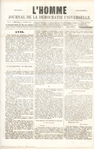 tins de Paris, eomplices des frayeurs de Madrid - et, voilà quatre mois, ~i peine, que Sarrag·osse était en guerre civile, et voilà deux mois, à peine, que Barcelonne, le Lyon dP l'Espag·ne, avait trente mille ouvriers en grève d., hataille, et, voilà plus de dix ans qu'elle est sou, i cl loi du sabre, tant on redoute son esprit indom/ able et ses ardeurs républicaines ! • • Ah! nous avons bonne : -:nérauce : ce sont l~ldes signes que nous çonnai~ -~s; ils ne tromperont point notre foi .fervente : _, annoncent la grande bataille d'un peuple et .,, mort prochaine d'un gouvernement ! III. L'HOMME. ORIENT. D'après une lettre de ,Viddio, à la date du 28 juin, Omer-Pacha annonce officiellement, que les Russes ont entièrement abandonné le siége de Silistrie. Pendant les quarante jours d'attaque, les Russes auraient perdu 25,000 hommes. Ceci est la version anglo-française. L'armée de Paskewitch qui forme des camps à la frontière transylvanien11e, élève sur ce point des batteries de défense : elle occupe la Moldavie, et n'a pas encore entièrement évacué la Valachie. Quant aux réponses du Czar, à l'empereur d'Autriche et au roi de Prusse, le prince Gortschakoff n'avait encore obtenu qu'une audience deFrançois Joseph, d'après la dernière dépêche. .Que le peuple espagnol écoute et suive les Voici le résumé de la le.ttre du Czar portée au proclamations qutl'appellent aux armes. La lutte roi <lePrusse pa:· :M. de Manteuffel: , est da11sson fier caractère, il n'aime pa:, la honte: D'après la Nouvelle·gazette, Nicolas accepterait il a toujours gardé la· sainte horreur de'> traîtres, le protectorat commun des chrétiens, aux termes des mignons, des q:mrtisanes; qu'il balaie toutes des coHférences de Vit:rrne; il évacuerait les proces pourpres, tous ces vices, et, qu'il surveille les vinces danubienne~, au cas où les puissances occiépées ! d l ,_. • ' 1 a·· enta es en 1eraient autan{, et a a con thon que La Rflvolution est jalouse; pour être' et durer, l'Autriche n'entrern~t pas; mais il veut g·arder la elle veut la souveraineté vivante et non des ré- ligne du Sereth pour des motif~ stratégiques. g·ences : les berceaux des petites infantes sont Enfin la Russie accepterait d'entrer ea nég·opleins de serpents, comme la corbeille des reines: ciations pour le rétablissPment de la paix, à la qu'on se souvienne d'Isabelle-b-bieu-aimée ! 1 condition qu'on n'ourdirait rien contre ellé, penLa République en Espag·ne a des racines pro- ' dant le cours de ces uégociations. Cette version fondes et des positions magnifiques : elle Y est na- n'a pas le caractère officiel, et tout est encore mysturelle et de droit national. grâce à la fierté sé- tère ! vère du peuple : elle y sera puissamment assise et bien gardt'•e, n\1yant presque pas de frontières à déft.-mdre. Oui, uous avons hmrne espérance en la patrie de Torrijos et de Riégo, les de11xgrnnds rn,1rtyrs: elle sera la première levée, la première affranchie parmi les nations vassales, et si les proscrits des autres ~atries la touTaie:it servir, henreux ils seraient d'aller mouru sur sa terre sacrée .... Ch. RIBIWROLLE8. P.8. Les de1:nières nouvelles que nous recevous sont pleines de désastres-mensong·es : les <lépê1iiies officielles chantent comme des hymnes ; mais vqici ce qne dit un petit journal de Bayonne 9:1i, saus doute, a déjà reçu so11 premier avertissement : ·' Le mouvement insurrectionnel de Madrid "n'est pas encore comprimé, malg-ré les assurances "si positives que donnent les journaux ministé- " riels, les seals qui paraissent aujourd'hui. " De nombreux rassemblemens atten<lent l'ar- " rivée de la malle-poste et des diligences venant "de Madrid. On interroge avec anxiété lPs vo- " yageurs. Leurs récits ne sont pas conformes aux " informations re~·ues par la voie officielle. On " COP1p:·endla réserve qui nous est imposée, èt " llOl!s empêche de les reproduirP. " N ons co11statonsseule:.:ent un fait." BULLETIN DU JOUR. ESPAG.XR. A Vilcalcarn, les insurgés ont Jj,,~·l· Ull combat saughni aux troupes tle lu reine : ces dernières :rounes n'ny~:,lt pu s:)Uh~nirles chocs de cavderie, ont ~-eculé.·Les g{)néraux O'Donnell et Dulce ont en nün cherché à enf011eer un carré de l'armée rovale, pour s'emparer des pièces d'nrtiileriP-; ln mhraille IPs a repoussés. Mais ~t la porte d' Alcalc1, les lanciers insurgés se sont je:és sur Hl! escndron de la cava!erie royale, et grûce ù l'inpétuosité de l'attaque, ils ont pris qnatre canons et fait 200 prisonniers. A la date du 7, une dépêche télégraphique· arntonce que les rebelles ont éYacué Aranjuez, pour s0 répandre dans l'Estramadure : Madrid et ies provinces sont tranquilles, toujours d'après la <lépêch€. • Sous le• prétexte des victoires remportées, on force· Madrid à illüminer la nuit. La mesure a pour but la surveillance des rues; ·on· craint les barricades. • • Les journaux de France ne pouvant donner les nouvelles qu'après le J;l.oniteur, on ne sait rien de Barcelonne. •Le peuple de Madrid,n'a pas d'armes, la garde nationale ayant été dissoute depuis longtemps. , C'est le ministre de la guerre qui commande les troupes royales .à la poursuite des rebelles., La reine ne sort plus de son palais que gard~nt a policé et la troupe. •• 1.. cr, .. .:-. ·:. -----·----------------- QUES'rION DU LENDEMAIN. Il faut y revenir; il faut insister .sur certains points qui, acceptés d'instinct par tous les hommes de bonne volonté, u 'en rcste11t pas moins comme eHtourés de \·oiles qu'il faut écarter. Ces voiles, nous devions nécessairement les trouver ~ernnt nous : ce sont ceux qui séparent le vieux monde du monde nouveau. 1 oute nais.,unce est entouréê de voiles. Si, au lieu de chercher ù découn-ir les objets qu'ils dérobent à nos regards, nous nous bornons à les considérer avec stupeur, avec effroi, on dira de nous comme on a dit des émigrés de 17