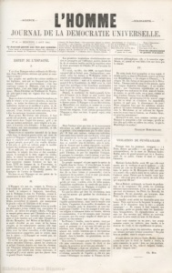 .• DERNIÈRES NOUVELLES. Sur la question de l'aliiance allemande avec~ les puissances occidentales, voici les chroniques'°les mieux fondées. La Prusse, pour faire traîner en longueur, (c'est là son rôle dans la comédie, et de par Nicolas), la Prusse n'entend plus s'exécuter, en même temps que l'Autriche, aux termes de la convention de Vienne. Elle discute, elle équivoque, elle se dérobe, elle continue le gachis des protocoles. L'Autriche, de son côté, n'avance pas et se contente de passer <l'innocentes revues sur sa frontière de guerre. Les troupes alliées sont toujours à Varna ou dans ses environs. Les Russes font marches et contre-marches, et les Turcs se fortifient dans les nouvelles positions conquises. Voilà la vérité sur les mouvemens, ce qui n'empêche pas lcsjournaux anglais et certaines feuilles belges d'annoncer avec fracas une gra9de bataille peur un jour prochain 1 Sébastopol n'est pas encore menacée, mais on a~rme ~ue _lesyaiss~au~ anglais ont transporté 80 p1eces d artillerie qm doivent tonner à Varna. . Ri~n de nouveau du côté de la Baltique: les s1tnations ne sont en rien chano-ées. .En Espagn_e, la Révolutign marche toujours dans les pro!mces, et le peuple de Madrid, Esparte!·o n arrivant pas, garde ses barricades. Le M_oniteurfr_ançais déclare que le duc de la Vic- ·toire et la reme se sont entendu... mais à distance et sans se voir ... Encore un mensono-e ! L' Evening 1lfail annonce qu'Espartero est enfi~ arrivé. , 9aant à _l'Italie, l'engagement de Parme a été senenx, puisque le canon a vomi ses bordées: une ·so~r~e agitation fermente partout en ce pays, et Y~1c1des paroles qui, nous l'espérons bien, n' étern<lront pas le feu ! El_les ~ont de ~azzini qui, toujours fidèle au .5-levo1r,vient de fa1re, au milieu des crises de l'Eu1·0J?e,un éloquent et nouvel appel aux énergies .vaillantes, aux colères saintes de sa patrie. Puisse cette grande voix être entendue ! " Hommes du parti national, à quelque fraction c1u~vo~s apparteniez, une grave responsabilité pèse auJourd hm sur vous. Vous demandiez pour vous lever une occasion favorable : vous l'avez. Vous vous plaigniez que des programmes exclusifs s'empa1:assentdu terrain politique : Voici un programme qui embrasse toutes les forces nationales et laisse la voie ouverte à vos théories devant le tribunal suprême du peuple. Au nom de l'Italie, secourezvous; sauvez l'honneur de la patrie et votre propre honneur. Il y a quelques jours à peine, les satellites del' Autriche fusillèrent un des nôtres. C'était la millième victime depuis 1848. Que ce soit le dernrer sang italien répandu sans provoquer partout une protestation virile. " Dans ce mois même où, frémissant de colère et_de honte, j'écris ces quelques pages, quatorze nulle des nôtres sont appelés à endosser la livrée de l'Autriche: affranchissez-les de cette infamie et offrez leur notre cocarde patriotique : Par tout ce qu'il y a de plus sacré au monde, ne permettez pas ~ue les hommes qui purent, il y a six ans, a?m~rer ~n nou~ des géants, puissent dire aujourd hui : S1x annees ont suffi pour amortir ces cœurs et glacer cette vie. " Nom, avons encore aujourd'hui la sympathie L'HOM~iE. de tout ce qu'il y a d'hommes généreux en Europe; demain, si nous ne profitons pas de l'occasion, leur mépris scellera sur nous la pierre du tombeau." A.VIS. Pour répondre aux nombreuses demandes qui nous sont journellement adressées, l'Administration du journal l'HoMMEvient de faire réimprimer les premiers numéros dont les exemplaires avaient été complètement épuisés lors de leur publication. En conséquence, on trouvera chez MM. les agents du journül ou à l'imprimerie universelle, 19, Dorset Street, à Jersey, les numéros qui manqueraient aux personnes faisant collec• tion de l'HoMME,à raison de 3 pence (6 sous) l'exemplaire pris séparément. Quant} aux personnes, au contraire, qui désireraient avoir tous les numéros qui ont paru jusqu'à c~ jour, elles peuvent se les procurer aux mêmes condit~ons d'abonnements qui se trouvent indiquées, pour chaque pays, en tête de notre journal. AVIS • L'administration du journal l'Homme croit devoir porter à la counaissance du public de Jersey que deux nouveaux bureaux, pour la vente du journal au numéro, viennent d'être établis : Chez l\Ime LEV AILLANT, marchande de papier et de fournitures de bureaux, Pierson Street, près le Royal Square ; Et chez M. HUREL, marchand de tabac, 24, Queen Street. On peut également s'abonner à ces bureaux . EN VENTE A L'I:AfPRIMERIE UNIVERSELLE, 19, DORSET STREET, SAIN''l1-HÉLIER (JERSEY) : Ou par commission à LONDRES, chez Erasmus ZMICHOWSKI, 10, Clarernont Place, J udd Street, New Road. DIXANSDEPRISON AU IIONT-SAINT-IIICHEL ET A LA CITADELLE DE DOULLENS, Par MARTIN BERNARD, 1 volume grand in-18 Charpentier. Cet ouvrage se tro1tt1cattssi : A LONDRES, chez JEFFs, libraire-éditeur, Burlingt0n Arcade; A BRUXELLES et à GENÈVE. LESBAGNES D'AFRIQ HIS'fOIRE DE LA TRANSPORTATION DE DÉCEMBRE, Par CHARLES RIBEYROLLES. l volume in-8.-Prix : 2s. Gd. ffift IR ill ~~Il1 ET LE VIEUXMONDE. PAR ALEXANDRE HERTZE~. Prix : 6d. (60 centimes). BIOGRAPHIES BONAPARTISTES, Par Pn. BERJEAt;. - Prix : 2s 6d. HISTORY OF THE CRll\!IES OF THE SECOND OF DECEMBER, By V. SCHŒLCHER, Representative of the People. l volume in 8. - Prix : 5 sh. A PROPOS D'UNE POLÉMIQUE RÉCENTE, Par ALFREDTALANDJER, brochure in-12 (grand format.) Prix : 2d ½ (25 centimes). Ouvrages imprimés en polonais. LUD POLSKI W EMIGRACYI. 1835-1846. l volume grand in-8., à denx colonnes. - Prix : IO sb. MYSLI SERDECZNE, K. BALINSKIEGO. 1 volume in-8. - Prix : 2s 6ù. NIEZABUDKI JERSEYSKIE, Roc1u RUPNIEWSKIEGO. Prix : lsh. PIENIA 'rULACZE, L UD. KORDECKIEGO. - Prix : lsh. E. A.LAVOINE, Proscrit français, ancien élèt·e de la faculté de Paris, Donne des leçons de français, de latin, d'histoire, de géographie, de littérature, etc. Il t>nseigne aussi les éléments des