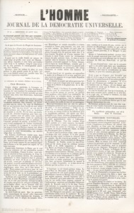 • -SCIENCE.-, ' -SOLIDARITÉ.- JOURNALDELADEMOCRATIUENIVERSELLE. Ne 40. - MERCREDI, 30 AOUT 1854-. 1 (Jersey), 19, Dorset Street.-Les manuscrits déposés ne seront I ANGLETERREET CoLONTES: pas rendus. - ÜNr.s'~BONNE.: A Jersey, 19, Dorset street. - A Un an, 8 shillings ou 10 francs. Ce Journal 1•a1•ait une .fois pa1• senudne. Londres, ch~z M. Zm1chowsk1, 28, Greek-street, Soho Square.-A Six mois, 4 sh. ou 5 fr. Genè~e (Smsse), chez M. Corsat, libraire, rue Guillaume-Tel!. -1 Trois mois, 2 sh. ou 2 fr. 50 c. PouR L'ÉTRANGER: Un an, 12 fr. 50. Six mois, 6 fr. 25. Trois mois, 3 fr. 50 c. Toutes lettres et correspondances doivent être affranchies et Belgique, ,chez M. Leconte, rue de la Rivière, H,, faubourg de CHAQUENUMi:Ro: adresséesau bureau de l' Imprimerie Universelle à St~Hélier Cologne a Bruxelles. - .d Madrid, chez C. Monnier, libraire. 3 pence ou 6 sous. To11g les abo1u1e1nen1t se 1•aie11.t d'avance. On lit q.ans la Gazette da Peuple de Lausanne : MM. Eugène Suc et Etienne Arago se trouvant dernièrement en passage à Genève, ont dû quitter précipitamment cette ville sur l'ordre cln département de justice et police. Nous tenons d'ail~ leursde bonne source que le citoyen Flocon y est l'objet de recherchesminutieuses, comme si un intérêt puissant était attaèhé à son expulsion. Il paraît que la vieille Suisse est jalouse dü laurierbelge tt qu'elle veut avoir ses Charras : nous allions répondr~ à cette lâche provocation contre l'exil et le malheur, lorsqu'il nous est arrivé un aide puissant, le consul-général américain, Geo. Sanders. Heureux, nous lui cédons la place et nous publions la plus gTande partie de sa lettre que nous avons traduite autant que possible dans son abrupteet vigoureuse simplicité. . Londres, 16 aoilt 1854. AU PRÉslDENT DU CONSEIL FÉDÉRAL DE LA SUISSE. CHER MONSIEUR, Comme citoyen américain, à l'étranger, et, votre frère en République, je saisis franchement l'occasion de vous exprimer les sentiments éveillés enmoi par une triste et récente nouvelle qui nous intéresse tous, nous, bons démocrates Américains -ouSuisses. ' ' La Rép~blique helvétique nous est chère comme une \Verte oasis au milieu des froids déserts de l'absolutiste continent. Son honneur, ses succès, son salut sont les nôtres. Le nom de Guillaume Tel1 est une harmonie dans l'oreille de tout enfant américain. Tell "au cœur defer" est une des di- ~i~ités tu~élaires que chaque ,~ère en Amérique ~?itco1!na!tre ~. s~n fils. Je n ai donc pas besoin, J en sms sur, d ms1ster longtemps pour faire comprendre combien nous est amère cette nouvelle que le gouvernement suisse aurait ou semblerait avoir (d'après les journaux) subi la politique de l'Autriche, politique de suicide, et teudant à s'opposerà tout~ propaga~de de l'action républicaine ~u~ 1~ co~tm~nt : à sr ~pposer à ce point qu'on irait .1usqu à hvrer les hberaux traqués qui, pleins de confiance en vos sympathies naturelles et comme on pourrait le croire incontestables, ont cherché refuge dans vos limites. Ces hommes, républicains comme nous mais moin~~eureux n'en s~nt, que plus mérita~s par leur mebranlable perseverance et leur foi. J'espère encore profondément que cette nouvelle est fausse, car la seule rumeur est une immense injure pour la Suisse et lui fait grand tort auprès de ses seulsvrais amis. .Comme not~e Amérique, la Suisse par le seul fait de son existence est une protestation morale contre le despotisme. Comme la nôtre, cette existencene dépend ni d'une permission ni d'une faveur des gou vernemens absolus. Ils connaissent p~rfait~m~nt la for~e ex~ansive dont le principe ~ep11hl.1caei?st doue, et ils ~e .se reposeront ni Jour 01 nuit, avant qtrn ce prmc1pe ne soit déraciné partout, ou qu'ils soient eux-mêmes renversés. Leur salut est dans le silence de toutes les voix républicaines, notre force est à leur donner le •souffle!Nous sommes arrivés en ce jour où tout hommed'intelligence doit comprendre que sa place est du côté de la lutte ou de la protestation· car d h ·1 ' ' ' en e or~, i n Y.a q~e la ?ar?arie ou la stupidité. La Suisse qm a auJourd hm cette grande sit.uat_iond'être la seule République organisée de l'Europe, est le seul pays pouvant soutenir les droits des peuple~ européens au self-gouvernement, soit par ses habiles efforts, soit en donnant asile aux patriotes des autres pays, et leur laissant ainsi développer la féconde influence de leurs vertus et de leurs idées. Le droit d'asile est sacré. Que les gouvernements monarchiques de second ordre repoussent les vaincu~ s?r l'ordre im~ér~eux des despotes, et. tombent amsi dans le mepns des hommes libres, une République ne saurait descendre à si lâche couardise et laisser, pour toujours, son nom sous u~e telle infamie. L~ S_uisse n'a~ qu'à jeter un regard sur sa propre hist01re pour savoir avec quel succès l'énergie et la foi peuvent tenir tête à la force brutale. Sa gloire est d'avoir, maintes fois défendu le droit d'asile contre les réclamation; iniques des plus puissans états, et, dans ce qu·on appelait alors la lointaine Amérique, nous nous rappelons avoir jadis applaudi la Suisse, lorsque, sous le règne de Louis-Philippe, sommée par le gouvernement français d'expul1>erun pauvre exilé qùi se cachait derrière ses montagnes, elle refusa noblement et résista même aux menaces de guerre. L'exilé dont il est ici question, est aujourd'hui le maître de la France et il ne sera peut-être pas sans intérêt de rappeler ici èe que Lonis Napoléon disait alors à la Suisse. '' Je félicite un peuple qui sait se gouverner lui- " même et qui tend chaque jour à se rendre plus " digne de la liberté et du grand nom de la Ré- '' publique.". . . . ... • Dieu a donné à la Suisse de grandes défenses naturelles pour la conservation de son indépendance, ce qui lui permet de pouvoir, en gardant toute prudence, rester :fidèle à ses institutions. Sa grande force, sa v