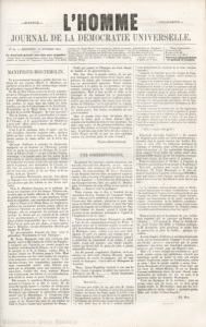 -SCIENCE.- ' -SD LI DARI'fÉ.- JOURNALDELADEMOCRATIUENIVERSELLE. Ne 47. - MERCREDI, 18 OCTOBRE 1854-. C.- .Jou1•1ud ~•a1•ait n111e (ois gta.1• sea11ah1e. (Jersey), 19, Dorset Street.-Les manuscrits déposés ne seront I ANGJ,ETER_R~ET CoLONTEs: pas rendus.- ÜN s'ABONNE: A Jersey, 19, Dorsetstreet. - A Uu an,Sshillrngs ou l0francs. Londres, chez M. Zmichowski, 28, Greek-street, Soho Squarc.-A Six mois, 4 sh. ou 5 fr. Genève (Suisse), chez .M. Corsat, libraire, ru~ Guillaume-Tell. -1 Trois mois, 2 sh. ou 2 fr. 50 c. POUR L'ÉTRANGER: Un an, 12 fr. 50. Six mois, 6 fr. 25. Trois mois, 3 fr. 50 c. Toutes letlres et correspondances cloivent être affranchies et dressées. au .bure:rn de l' [mprimerie Universelle à St-Hélier Belgique, chez tous les libraires. - A Madrid, chez Casimir CHAQUENUMBRO: 'l'eus les a1Jo1111en1en• se 1•aient tl'a,•anee. Monnier-, libraire. 3 pence ou 6 sous. ARlV.I\ND B.\RBES ET LOUIS BO~APARTg. 1 \ Le gouvernement de M. Louis Bonaparte, ayant eu l'échec de la dé1iêche-Sébastopol, avait compris qu'il fallait une diversion morale, et il s'était. p:'rmis d'amnistier Barhès. Nous -avons aujourd'hui la lettre-réponse de notre camarade, et nous la livrons, non pas à l'histoire, mais à toutes les opinions et à tous les honnêtes gens : " Monsieur le directeur , • " J'arrive à Paris, je prends la plume, et je vous prie d'insérer bien vite cetce note dans votre journal. . " Un ordre, dont je n'examine pas les motifs, car je n'ai pas l'habitude de dénigrer les sentiments de mes ennemis, a été donné le 5 de ce mois au directeur de la• maison de détention de BE>lle-Isle. " Au premier énoncé <le cette nouvelle, j'ai frémi d'une indicible douleur de vaincu, et j'ai refusé tant que je l'ai pu, pendant deux jours, de quitter ma prison. " Je viens maintenant ici pour parler de plus près et mienx me faire entendre. " Qu'importe à qui n'a pas droit sur moi que j'aime ou non mon pays? " Oui! la lettre qu'on a lue est de moi, et la grandeur <le la France a été, depuis que .j'ai une pensée. ma religion. '' Mais, encore un coup, qu'importe à qui v'ït hors de ma foi et: de ma loi que môn cœur ait ees sentiments ? Décembre n'est-il pas là, et pour toujours, un combat indiqué en1re moi et celui qui l'a fait? . " A part donc ma dig-nité personnelle blessée, mon devoir de loyal ennemi est de déclarer-, à tous f.ltà chacun ici, que je repousse de toutes mes forces la mesure prise en mon endroit. " Je vais passer à Paris deux jours pour qu'on ait le temps de me remettre en prison, et ce délai passé, venrlre<li soir, je cours de moimême chercher l'exil. A. BARBÈS. " " Paris, le Il octobre 1S54, dix heures du matin. - Grand hôtel d.i ·Prince Albert, rue Sainte-HyacintheSaint-Honoré.'' Nous P.tionsparfaitement convaincus que Barhès répondrait ainsi: victimt: d'un coup de grâce qu'il n'avait certes pas mérité, il a compris immédiatement qu'on voulait le perdre, exploiter son beau nom, et se servir de lui, co·ntre nous, contre la cause, contre les idées. Cartouche amnistiant Bayard, c'était habile et fort adroit; mais un soldat républicain, comme Barbès, est très dangneux pour les cléments du crime, et quand les portAs lui sont ouvertes, il reste sur le seuil des prisons, défiant les guichetiers et les gouvernements. Barbès, dans sa lettre interceptée ou communiquée, donnait son opinion sur la guerre d'Orient. L'opinion d'un prisonnier est sacrée pour nous, comme celle des forçats-citoyens de Cayenne et de Lambessa; mais nous dirons à notre ami qu'il ' t , / t ses trompe sur nos esperances e sur nos seutimeuts Pas plus que lui nous n'aimons la guerre, cette monstrueuse débauche de la force ; la guerre est pour lui, comme pour nous tous, ce qu'un ancien doctrinaire appelait le grand jeu des hasards. La g-uerre '? Robespierre n'e11 voulait pas eu 92. ' - Condorcet la répudiait comme la courtisane de toutes les fortunes, et nous, h~ritiers des !rrandes pensées de nos pères, nous maudissons le drame des batailles, parce que nous sommes prof ndément hurnains. C'est la seconde époque de nos temps. Maintenant, qu'est-ce qne la guerre d'Orient pour •on~? Un abominable despote qui se fait appeler Dieu dans ses catéchismes, profite de la République française morte, et veut réaliser son rêve, le rêve de deux siècles d'absolutisme, - il marche sur Constantinople ! L'intérêt anglais, l'intérêt mar~hand s'inquiète, et l'autre misérable despote, qui est à Paris, s'allie à son ennemi de Sainte-Hélène, contre le Russe dont il pratique les priuci_pes : - il avait besoin de diviser l'Europe dans ses desseins futurs! Nous avons compris sa pensée, nous qui savons sa tradition et sa vie. La Belgique, la ligne du Rhin, le royaume d'Italie, les grands Duchés et les Contëdérations d'autrefois, voilà ses rêves! Mais puisqu'on n'a pas le génie des victoires, il faut bien avoir la ruse et les petits moyens; voilà pourquoi, sans aimer l'Angleterre, sans la comprendre dans sa vie de liberté, Louis Bonap<1rte a fait accord avec elle: il fallait diviser l'Europe! Séparez l'Angleterre de la Rassie, vous enlevez la caisse à l'armée! Voilà ·l'intérêt <le Bonaparte dans la question d'Orient. Quant aux républicains, leur pensée la voici : La France n'a pas assez souffert de Waterloo pour en garder un éternel ressentiment. La France n'a pins besoin de faire ses preuves sur les champs de bataille : sa vie morale n'est plus là. La Fruncé-, c'est l'idée d'~galité qui veut, non pas <les strophes, non pas des romans, mais des études sérieuses sur le Socialisme, et des hommes qui sachent vivre, combattre et souffrir pour elle, •comme vous, .Barbès ! Ch. Rrn. Le gouverAemf'nt de Louis Bonaparte est aux abois; ses petites victoires lui coûte11t si chet qu'il est. obligé de faire un troisième emprunt. Comment l'établir et le faire venir à point? Le peuple des campagnes est à bout : les mercuriales du Mon