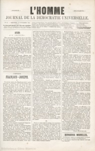 -SCIENCE.- -~O LID.A.RITÉ.- JOURNALDELADEMOCRATIEUNIVERSELLE. MBRE 18 4 (Jersey\, 19, Dorset Street.-Les manuscrits déposés ne seront I ANOJ,CTER_~~ET CoLONtEI!: Ne 53. - 11'!ERCREDI, 29 NOVE 5 • pas rendus. - ÜN s'ABONNE: A Jersey, 19, Dorset Street. A U_n an,_8 sh:,lmgs,r.ou 10 francs. Londres, chez M. STANISLAS,28, Greek-street, Soho Square.-A Six _mois'.4 sh. ou iJ :r· Ce Jo111•11al 11au•ait une f'ol8 1aa.1• 8e■na.ine. Genève (Suisse),' chez :.1. Corsat, libraire, rue Guillaume-Teli- -:-1 Trois mois, 2 sh. ou~ fr. 5 0 c. POUR L'~TltANOER: Un an, 12 fr. 50. Six mois, 6 fr. 25. Trois mois, 3 fr. 50 c. Toutes lettres et correspondances doivent être affranchies. et Belgique, chez tous les libraires. - Â !tfadrid, chez Casnmr CHAQUENUMERO: dressées au bureau de I' Imprimerie Universelle à St-Hélier Monnier, libraire. 8 pence ou (l aous. 'l'ouii le!il abou11en1ene ue paient d'a'l'ance. AVIS AUX ABONNÉS Nous prévenons les personne_s qµi se so?t abo_nnées au journal l'Homme, soit pour trois mois, soit pour six mois, soit pour un an, et qui n'ont pas encore ,ersé le montant de léur abonne~ent jusqu'au 1er Décembre 185.t, qu'elle-s so11t mstamment priées de S'ACQUITTER SANS RETARD entre les mains de M. Stanislas TCHORZWSKI, Q8, Greek-stn- et, Soho Square, London, ou bieu de l'envoyer directement à l'administration du journal, à Saint-Hélier (Île de Jersey), 19, Dorset Street. Da11sce dernie-r cas, il suffira d'adresser soit un mandat sur la poste, ou en starnps, au nom de M. Zeno SwJETOSLAWSKI. Les souscri pte11rs au journal !' Homme sont avertis que la SECONDE ANNEE du journal commencera le Ier Décembre 1854; partant, l'Admi11istration prie les personnes qui désireraient renouveler leur abonnement, d'en envoyer immédiatement le prix d'avance à l'adresse indiquée, AFIN D'ÉVITEH. rrourr RETARD dans l'envoi du journal pour le_no_uveau terme. - . Les c,,onditions ci-dessus sont 111d1spt11sahleset dotve-nt etrn remplie", - autrement les Abonnés s'exposeraient à -la cessation de l'envoi du jourrrnl. L'EMPEREUR .FRANCOIS cm JO EPH. 5 I. Cf dernier rejeton des Hapsbourg- était à peine entré dans la puissance qu'il prenait chaque jour son bain de sa11g comme un vieux r lÎ: . r ils de Fra11çoi-.-Charles et de Sophie de Bavière, espèce de \lessali11e hlo1,de qni daigna protéger le g·énéral Vasa, le nouvc>I.e:nperenr ~?nta au trône r'.i cette même date fat1<l1que et sm1stre de Dét;embre l848, date qui donna la Présidence à Louis-Napoléon. Il avait, alors, à peinA dix-huit ans, et ·Jesâmes simples e.;péraie11t qu'à rnnt de j<•trnessé il se ~~ lerait un peu de cette l'aiblesse charmante , qui signala les premiers jours ~e Néron. Mais .les _Hapsbouro-naissent grands-maitres en tyrannie : ils suceut, 0 comme premier lait, le sang· des peuples, et la mère de cet impérial louveteau n'était pas femme à laisser se développer en lui les instincts cléments et les grâces uaïves, qui sont la fleur et comme le parfum de la première vie. Une année s'était à peine écoulée depuis son avé11ement, quP déjà la Hongrie, couvert~ d'échafands, voyait se balancer, au vent de-s gibets, sa 'Vaillante g·énération de guerre. Ses fils les plus illustres et les meilleurs, hommes d'Etat, savants ou capitaines, étaient jetés tour à tour au bourreau. Ses femmes elles-mêmes avaient à subir la publique infamie, le supplice hideux des verges autrichiennes, et les généraux du jeune empereur présidaient, comme en des académies, à ces exécutions monstrueuses. C'étaient là les premiers tournois de l'empereurchevalier, du jeune François-Joseph. Après la Hongrie, l'Italie; et, nous devons même dire, pour 11e lui point faire dommage, qu'il sut mener de front les boucheries et les supplice-s daus les <leux patries, aussi féror.e à Pesth ou sur la place d' Arad qu'implacable à Milan. Avant de mitrailler les Parisiens, d'ensanglanter jusqu'aux derniers villagc>s de France, d'organiser ses prétoires d'assassins et de lancer ses pontons à travers les mers, Louis Bonaparte avait 1'écu, longtemps vécu dt,S mépris de l'Europe : rexil lui avait volé trente ans de tyraunie, et -cette haine altérée, repliée sur elle-même, avait accumulé dans la nuit et l'isolement les désirs farouches, les projets si11istres, les rêves-vengeurs : il était en retard de deux ou trois gé11érations avec la Révolution Française et la liborté: aussi quand il put déborder, ce fut une véritable invasion -~es crimes et l'homme donnant toute sa mamere prouvd qu'il était com~let dans la ty;anni~. Mais comme.nt ce Jeune César d Autriche, à peine éclos à la vie sérieuse et_que 11'avaif>ntpo~nt flétri les julousies amère,, a-t-il pu, dès le premier jour, avoir ainsi l'irnpa.,sibilité des grands tueurs d'hommes et la solidité des vieux tyrans! Ceci èst, à la fois, un privilége de race e-t le secret des éducations autrichie1111es. Dès le berceau, les petits Hapsbourg voient rouge : leur sang s'irrite, s'échauffe comme les poisons : ils so11t presque tons atteints de J'épilepsio vertigineuse, et leurs premières caresses ont de l'écume. V oyez ce dernier : il est grand, dans toute la force de la première jeunesse; il n'a jamais souffert des tristes maladies du pc:1uvre-,la soif, la faim, le froid ; il ne sait point ce qu'il y a de_larmes dans le travail, de craintes dans le salaire des concurrences , et les repas <le ses chiens seraient des ag-apes p•rnr ses paysans. Eh bien, il a la jeune-sse terne, froide, suns élan, sans sourire, comme les n.ichitiquvs. Son front s'efface et fuit, comme -s'il avait penr de la pensée, et le ~ang est si corrompu, si rare dans ses veines appauvries, que l'œil est mort et la lèvre toujours pendaute. fat Lèvrependante, voilà les Hapsbourg ! Ce vice orio-inel, qui est un des caractères du crétinisme, n'~st pas nouveau dans la famille humaine:"' mais il frappe, surtout, les races qui ne se renouvèlent p