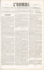 L'HOMME. -------------- ·-----------~----------------------·-----:,------------------------- Peuple anglais, s'il entc:id se foire l'universel champion du droit sur la terre - ce qui serait, à la fois, et le devoir, et le salut, et l'honneur; - il a tort de sacrifier la Révolution par les peuples, à la paix avec les despotismes. LPs commettants de M.. Cobden ont voté contre lui, pour une énergique continuation de la guerre. S'il ue se ravise, l',1. Cobden sera bie11tôt enterré ! Ch. IL LA FRANÇE ET L.\ RÉVOLUTION. Je demande la condamnation et l'abolition du Christianisme par rles motifs de diverses sortes: 1° au 11nm de l'histoire philosophiqne de l'esprit humain, et de l'incompatibilité radicale, absolue du Christianisme avec la philo- :;ophie ; 2° au uom <le la métaphysique, r.'est-à-dire de la sci,~nce de \'homme, de l'univers et de Dieu; 3° au nom de la doctrine {(e la morale, de la liLerté et <le la démocratie; 4° enfin, au nom des conditions essentielles du bonheur des individus et des peuples, des intérêts géHéraux et permanents du genre humain. Procétlons par ordre, et traitons maintenant des deux premiers points. L'histoire de l'esrrit humain me paraît se diviser en trois gra1~des époques: la première, qui comprend la hJute antiquité; la ùeuxième, l'antiquitP. gréco-romaine; et la troisième, l'ère moderne. Différentes par le fond, elles sont semblables par la forme; j'entends dire qne, dans toutes les trois, malgré la divergence des irlée.:i, des doctrines et <l.esinstitutions, la même loi a 'présidé an développement <le l'esprit humain, cc cléveloppement s'ét:rnt fait d'abord par la religion, ensuite par la philo~ophie. Qne la haute antiquité ait été reli,9ieuse est un fait évident, et sur la <lémo11stration duquel je n'ai pas à insister; mais la haute an~iquité philosopî1ique, cette ·issertion étonne et soulèfff: la contestation. B,ien de plus vrai pourtant. Ainsi, la Chine a été si hien philosophique qu'elle l'est encore, et que, rlepuis de1.)xmille ans, elle subsiste sans religion, sans culte, sans prêtres, s:rns sacrifices ; et si, ·contrairement il. ce qui s'est passé en Chine, la religion fut surtout domiuante chez les autre:s peuples de la haute antiquité, la JJhilosopl~ie s'y montra néanmoins, y régna et gouverna aussi. Examinons l'lnrle, par exemple. C'est Fi., dans la haute antiquité, le pays religieux par excellence. Eh bien, qu'est-ce que nous y voyons? Nous y voyons trois moments o.ans le mou\·ement général de la pensée humaine : un premiE:r moment où la religion est acceptée anssi ·humblement qui:! possi111:, est suivie et enseignée à la lettre ; un second n;10ment où, tout en s'appuyant sur elle, on 11ecraint pas, an besoin, de s'en .écarter nn peu ; eufin, un troisième où la raison, s'en foisa11t juge, en ·admet ·et en rejette ce qui lui convient. L'étude du développement religif:UX et philosophi,pie des Perses, IIIèJe-s, ·Egyptiens, etc., nous amènerait au mème résultat. Donc, il est démontré que, dans la hante antiquité, la philosophie parait à son tour, et après la religion. Tandis 11uela h rnte antiquité fut principalement religie11se, l'antiquité ~réco-romainc fut principalement philosophique. Cependant, cl?.ns ce set0:1d âge du monde ai11si que dans le premier, la religion précéda la philosophie; car, av 1nt les écoles Ionienne, Italt'lue, Eléatique, - avant les Sophistes, - avant Socrat~, - avant l'ancienne Académie, - avant les Péripatétitiens, les Epicuriens et' les Stoïciens, - avant Cicéron, Sénèque ·et Marc-Aurèle, il y ent les prêtres et t6us ces premiers poëtes, les Linus, Orphée, Homère, Hério<le etc., qui chr.ntèrent ingénuemcnt dans l.eurs po~mes les fictions religieuses, telles que la tradition les leur fourniss,1it. Et même, malg.ré la puissance de la philosophie, Ja religion y conserva assez d'empire pour y faire condamner à mort Socrate, l'un ùe ces hommes rares qui honorent l'humanité, comme coupable <le corrompre la jeunesse et d'enseigner dP.s dieux nouveanx. Q11oiquïl en soit, ici encore, nous trouvons l'élément religi~ux et l'élément philosophique dans l'ordre <lemanifestation et de succession que nous avons noté précédemment. Le christianisme offre mê:11c physionomie. Quelle église fut jamais plus puissante q11e l'église chrétienne! Mai~ bientôt se lèrent le ~chisme et la philosophie. Dès le XIIIe, siècle, parait l'hér(sie <les Albigeois; puis viennent Jean Hus et Jérôme de Prague; enfin, l'unité se brise sous les coups de Luther, et des ruines dont le grand moine jonche le sol sortent le Ca~holicisme et le Protestantisme. Et ce n'est là qu'un des côtés <lu mouvement de l'esprit humain dans la civilisation à laquelle nous appartc1101Js. En même temps que 1c Christianisme se divise en lui même et se déchire de ses propres mains, la philosophie pren<l la parole pour son propre compte. Et, depuis son !!pparition snr la scf'ne du monclc moderne, avec quelle admirable logique elle poursuit sa per,sée, elle marche à son bnt ! Voici, successivement, d'un côté Rabelais, Montaigne, Voltaire, qui sapent' et détruisent le Yieux monde par le cloute, l'ironie, la moquerie, le mépris; et ,de l'autre, Bacon, Descartes, Rousseau, Condorcet, Laimennais 11ui tt·nte11t de ~onstruirc le nouveau sur les bJses de la r~ison, de la morale, de la liberté, de la démocratie, du pro6rès et de l'amélioratiou sociale. De la philosophie de l'histoire <le l'e1.prit humain il résulte donc que, d'une part, l'esprit humain se manifeste sous une double forme, sous forme religieuse et sous forme philosophique; et que, d'une autre part, ces deux formes ne se produi:,ent pas à la fois, maiR l'une a.près l'autre, en premier lieu la forme religieuse, et en second lieu la forme philosophique. Mais, pour la démo11stration de notre thè.,e, pour la co11damnation du christianisme sous le point de me que nous avons abord(