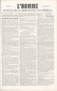 -SCIENCE.- ' -SOLIDARIT:è.- JOURNADLELADEMOCRATUIENIVERSELLE. N~ J 3. MERCREDI, 28 FEVRIER l 855.-2e Année Ce Jou1•1ul.l 1•a.rait une Cei8 pat• 11e1nah1e. Toutes lettres et correspon~ances doivent être affranchies et adressées au bureau de l' fmprimerie Universelle à St-Hélier Il est de mode, aujourd'hui, presque dans tous les camps, d'insulter à la Révolution de Février et de l'ensevelir sous ses malheurs. Ceux qui l'ont exploitée, trahie, vendue, l'appellent la granrle catastrophe: c-'e~t la logique des apostasies. Ceux qu'elle avait saisis et châtiés dans leur règne insolent et bas, la dénoncent comme le crime du siècle: c'est la logique des intérêts. D'autres-oublieux qu'ils sont,-· l'accusent comme la Mère des stérilités et des ruines ...... La Révolution de Ffvrier, malgré tous ces anathêmes, restera la date, la grande date de nos temps ; et tout esprit qui veut se reridre compte en saisira facilement les beautés sérieuses, les forces austères et nouvelles. Cette journée du 24 Février ne fut pas seulement une bataille, une lutte héroïque du peuple et qui peut laisser à l'histoire une épopée de guerre. Ce côté de !'Energie, du Sacrifice, des Armes, fut brillant; et bien peu l'on en compte, à travers les siècles, de ces Heures sacrées où les Foules civiques s'entraînent à la mort, pour que, de leur sang qui fume, naisse l'Idée qui monte. 1vlais la Révolution de Février n'est pas toute entière dans la prise d'armes heureuse, dans le succès de guerre, dans l'acte éclatant qui la consomma. Elle fut de plus une Souverai11eté ; elle fut aussi une Religion : les deux phs grandes choses de l'histoire et de la vie. Elle fut une Souveraineté. Jusques là, qu'était le Peuple ? Il payait de son sang comme soldat~ de ses sueurs comme ouvrier, et, comme contribuable, sm sa faim. Depuis plus d.'un demi-siècle, il n'avait pas mis sa main libre dans les urnes. Il était le grand anonyme rles merveilles que le tr:ivail enfante ; il était le forçat de nos 11rivilèges et de nos gloires. • Tout-à coup, en quelquP.1>heures, fille de la victoire la République arrive, portant dans ses bras les grandes urnes de la Souveraineté qui est la Vie ; et si les mains noires de poudre avaient alori:<pu jeter les bulletins, la Révolution aurait eu ses vraies destinées. Toujours est-il que le prmcipe de l'universel et libre suffrage était conquis et proclamé. La France entrait en plei11e puissance d'elle-même. Au milieu de l'Europe des aristocraties et des rois, n'était-ce rien que cette nouveauté ? n'y avait-il pas un ensei;_{nement fécond, un appel puissant, dans cette métamorphose de la servitude en liberté rayonnante, dans ce pa,sage de l'ombre obscure à la pleine lumi.ère ? Les principes de force et de vérité qui tombent dans la famille humaine ne seraient-ils pour les peuples quP. des aërolithes? Elle est encore une Religion. Que fit le Peuple de Février en pleine ivresse de victoire? Souverain armé de la Force, il ne transporta pas, il ne tua pas ; il brûla les deux poteaux, l'échafaud et le trône ; mais il garda la foi publique, sévèrement, religieusement: il subit les contrats qui l'accablaient, sauf à débattre et plus tard à modifier - jusqu'à l'égalité - par les voies légales ... Il fut la Conscience active des philosophes qui ont développé la régie humaine. et, pour la première fois dans le monde, on vit les instincts d'un peuple en équation avec les idées. La Révolution de Février fut donc une bataille héroïque, une souveraineté vivante et de plus une religion. Soldat, citoyen et penseur l'homme-peuple était né. De Février, voilà les grandeurs : ne les oublions jamais ; elles seront l'essence et la fleur de l'avenir. • De la Révolution de Février voici, maintenant les malheurs. Elle eut à son berceau tous les rois-mages de l'ancien monde ; les épées, les toques, les écharpes de la monarchie s'inclinèrent, et les puissances de la Yeille, apostasies du lendemain, ayant caché leurs livrées, s'abritèrent sous ses cocardes. Donc, première èause d'avortement : la faiblesse de quelques-uns et la trahison des autres. Malheur plus grand, et faute emportant la mort ! la Révolution ne pratiqua pas la Solidarité qui était le devoir et qui était le salut: penchée sur ses livres sybillins, elle se concentra dans les études qui dévorent, et ses gouvernements qui la suivaient d'un œil inquiet ne l'appelèrent pas à la propagande armée des frontières. Ils étaient d'ailleurs inspirés par l'esprit de paix, qui est l'esprit de vie dans les conditions réglées, mais qui sera l'esprit fatal, tant qu'il y a,ira des tyrannies sous les pourpres! Enfin, les problêmes de la Révolution furent écartés et restèrent ferm~s : la loi n'y voulut point entrer. Faute terrible entrè toutes ! car les problêmes reviennent, toujours, quand ils s'appellent la misère, l'ignorance, le travail, la faim, et, comme les vapeurs d'orage, ils se con- (Jersey), 19, Dorset Street.-Les manuscrits déposés ne seront I ANGLETERREET CoLONTES: pas rendus. - ON s'AnONNE: A Jersey, 19, Dorset street. - A Un an, 8 shillings ou 10 fran es. Londres, chez M. STANISLAS1, 0, Greek-street, Soho Square.-A Six mois, 4 sh. ou 5 fr. Genève (Suisse), chez IVI.Corsat, libraire, rue Guillaume-Tell. -1 Trois mois, 2 sh. ou 2 fr. 50 c. Poun L'ÉTRANGER: Un an, 12 fr. 50. Six mois, 6 fr. 25. Trois mois, 3 fr. 50 c. Belgique, chez tous les libraires. - A Madrid, chez Casimir CHAQUENUMÉRO: '.l'ous les t1Jho1111e111e:ns se 11aient tO'a,.anC!e. Monnier, libraire. 3 pence ou 6 sous. densent sur nos têtes pol)r retomber, tôt ou tard, en pluie de sang et de feu. Surveiller les hommes, rester fidèle aux principes acquis et regarder en face tous les problèmes, telle sera l'œuvre, telle sera la tâche du sr.cond Février qui n'est pas loin. Non, il n'est pas loin : car les luttes s'irritent, les hasards accourent, et la France est inqui
