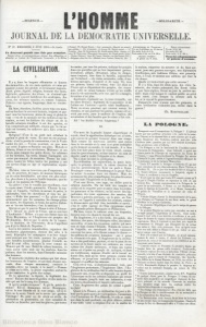 ' I L'IlO ~l ~1E. .... --·--------------------------------------------------------- "ce offensive et défensive contre l'Angleterre. Constan- " t.inople et Atl1ènes devaient être érigées en Royaume de " Grèce ou de Byzance au profit du grand_;Duc Collstantin. " Nicolas devait relever la Pologne et la France reprendre " les frontières du Rhin. "La Révolution de 1830 sauva la Belgique de ce dan- " ger, mais elle ne fit rien poux la Pologne. Tous les ." ans les chambres dans leur adresse émettaient un vœu en "faveur de la Nationalité Polonaise, et tous les ans Louis "Philippe répétait: La Nationalité Polonaise ne périra "pas. "Toutefois, si nous ne nous trompons, cette formule " devenue un peu monotone, fut abandonnée après l'Ukase '.' qui ordonna qu'en Pologne, l'armée, l'administration et ." le culte seraient à l'avenir complètement Russes. " Arrive le 24 février 1848. Nous savons ce qu'ont " fuit pour la Pologne la seconde République et l,e second " empire !......... " Ce que n'ont pas fait les Monarchies par intérêts les Républiques par impuissance, le Bonaparte de Décembre voudrait-il, pourrait-il le faire ? Pour reconstituer tL Pologne, il faut que le drapeau français flotte sur la Vistule. Or les armées françaises ne peuvent entreprendre seules une parei1le guerre. Elles ne peuvent avoir de chances de succès que dans une Révolution européenne. C'est donc avec une profonde conviction que nous disons à tous les amis de la Pologne : banissez les espérances que pourraient vous donner les manifestations princières et les promesses de l'homme de DécPmbre, il ne pe11ty avoir là qu'une trahison. L'homme qui a foulé aux pieds la Révolution ne saurait l'appeler. Vingt fois Kossuth a dit à l'Angleterre, la politique d'honneur, la politique de justice, la politique de s.alut et pour la Pologne, et pour les trois royaumes et pour l'occident; mais la cité de Londres rit des prophètes, comme autrefois Jér~salem. Le jour n'est pas loin où elle pourra pleurer. Voici, encore, une voix qui l'avertit, celle de :M.ieroslawski, un homme de guerre. Peine perdue! et, pourtant les conseils sont bons: l'auteur les résume ainsi dans sa forme rapide : I. La Russie étant une puissance essentiellement continentale, et incapable de prétendre sérieusement à aucun développement naval jusqu'à ce qu'elle ait étendu et consolidé sa domination sur les côtés grec11ues et scandinaves, il est absolument sans intérêt d'attaquer ses frontières maritimes. II. Le pouvoir continental de la Russie n'étant bas6 que sur le démembrement de la Pologne, c'est seulement dans sa partie polo11aise que la Russie est vulnérable. III. Mais ce seul point vulnérable de la Russie étant constamment protégé par les puissances allemandes qui ont pris part au démembrement de la Pologne, le Tzar, par sa conqnête de ce pays, trouve dans l'Allemagne 1m ferme appui, le protectorat du Panslavisme, et la certitude de pouvoir reprendre par terre, non seulement ce qu'en peut lui prendre de ses frontières maritimes actuelles, mais même les deux clefs navales de l'Europe. IV. Dès lors, pour attaquer ce seul côté vulnérable et accessible de l'empire russe, il faut cPsser de demander la permission des puissances allemandes et prendre une route qu'elles ne puissent interdire. C'est seulement lorsque ce chemin sera trouvé et que l'Occident aura -pris en main la restauration de la Pologne, que ces puissances repousseront le vasselage de la Russie, et seront forcées d'agir de concert avec l'Ouest. V. Cette autre voie pour arriver eu Pologne a été ouverte le jour-où les flottes sont entrées dans la mer Noire et dans la Baltique; car la Pologne est l'isthme qui joint ces rleu~ mers, et les deux extrémités de cet isthme sont comprises dans la Pologne russe. VI. Quand la France et l'Angleterre auront com1)1'is que les extrémités de cet isthme sont Odessa et Riga et non Sébastopol et Cronstadt, elles auront ff examiner comment elles doivtnt agir sur ces nouvelles bases d'opérations pour relever une véritable et utile Pologne, une Pologne qui pui11se, dans toutes les éventualités à venir, arrêter, empêcher les succès des Russes. VIF. Que les puissances occidentales ne se trompent pas sur ce point, 1101 s les avertissons que -- d'une part, dégoûtée par la cruelle expérience de cinq tentatives de résurrertion par les voie~ diplomatiques qui ne peuvent tonduire qu'à un sixième et mortel démembrement, d'aut-re part, décapitée, dépeuplée, paralysée à l'intérieur par ses trois oppresseurs réunis, - la Pologne ne se lèvera en armes qu'à l'appel de son émigration rentrée dans son sein. Telle serait la triomphante réponse faite anx autres peuplés de la terre par la nation polonaise sur cette dél(!- gation, sans cesse renouvelée, pendant les vingt-trois dernièrelil années. . VIII. Afosi toute guerre entreprise contre la. Russie. ne neut aboutir qu'à un armistice, préliminaire assuré de son 'triomphe, à moins que l'érnigratiom polonaise ne soit armée dans le but exclusif d'ouvrir, à l'airle de cette avant-garde, les deux portes de la Pologne sur la Baltique et la Mer Noire .. Tel est le plan. Nous voudrions- pouvoir analyser la brochure entière imprimée par le Co • mité de Newcastle, mais ce qui vaut mieux, c'est la lettre suivante : .MON CIITIR MONSIEUR. J'ai lu Je mémoire du général Mieroslawski. Il est bien,·vrai, digne, que puis-je dire de plus? Mes profondes sympathies pour la Pologne sont connues depuis 1831; je ne mériterais pas de défendre ma • nationalité italienne et d'aimer la liberté, sije pouvais oublier ou mépriser les souffrances et les droits ~es autres nations, celles-là surtout qui, comme la Pologne, ont combattu et versé leur sang pour nous tous. Ma conviction bien connue est que le Czar ne peut pas être vaincu,si ce n'est sur la ligne qui s'étend de la Vistule an Dniéper, et que le coup décisif ne peut être frapp