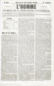 par dédain repoussait hautement ou· .lJien opprimait sourdement. Le parti démocratique a des scrupules que la réaction n'a pas et ne peut avoir ; le parti démo<:ratique nie les personnalités. Il croit en cela .rester fi~è!e à son principe et favoriser d'autant l'avénement de l'Egalité. C'est une erreur dangereuse, c'est une sottise impardonuable que de raisonner et d'agir sùr cette donnée si malheureusement empruntée aux déceptions de l'absolu. Le mal est organisé et he pent être combattu que par le bien organisé. Il n'y a pas d'0rgani.,ation sans chefs, '$ans guides, sans enfants perdus et le bien ne triomphera jamais s'il commence par renrlre impossiblas, par décourngcr les enfants perdus, les guides et les chefs de la révolution. Toute la politique de l'exil peut donc se formuler en quelques mots : rechercher tous les eunemis du mal existant, .quel qne soit leur nom, leur mot d'ordre et leur idée définitive, ets 'allier avec ceux d'entre eux dont le programme est le plus large au point de vue du progrès; se pli,~raux nécessités d'une organisation indispensable ; fermer la bouche aux .malveillances inutiles et fl ·trir du nom de traître quieônque éle\·euit la voix contre un ami sincère, éprouvé de la révolution démocratique et sociale quelles que soient d'ailleurs les erreurs, les fautes que ce dernier ait pu commettre dans le passé. C'est à ce prix que la politique de rexil a quelque chance de sortir des bornes de la secte, de la chapelle, du restaurant démocratique. J.-Ph. BRRJEA.U. RÉSUM:è DE LA SEMAINE. Sauf quelque., cornlints linés aux. emb11scades poussées sons les fortifications Malakhoff, et la mort de l'amiral N t1kimoff ( qui <.:ommanda-it ù Si110;:>e)tné par un bonlet, le siège de Sébastopol continuo sans incident. • .La d~rnission de Lord .Tuhn Rossell ( qui a d"ailleurs prétendu que le Cabinet était unanime pour poursuivre dé,;ormais énerg-iq t1ement la guf>rre) a forcé les Tories de retirer la motion Bniwer. :\-.1. d'Israëli en a pris texte po11r dé:ioncer la donhle. politique du N{inistère, belliqueuse devant le Parleme1H, ultra-pa<'ifique dans la Diplomatie ; 011 saJ;rifie parfois un ministre ù l'opinion, pour garlle1, le pouvoir. La Chambre finirn pourtnnt par voir combien sont fondées les accusations portées coutre le GouvPrnement. M. Roebuck, après avoir pri~senté le rapport de la Commission d'ena11ête snr les désastres de Crimée, a clemundé ur; blâmé pour tous les membres du cabiuet Aberdeen. Appuyée par les rrories et par le parti de la Paix, sa motion a été rejetée par la majorité, pour ne pas renver~cr Palmerston, au- .quel le général Lacy Evans a pourtarit reproché de ne pas avoir encore déployé l'énerg·ie qu'on attend de Iui pour l~s réformes intérieures et la politiq 11e extérieure.. . Le Gouvernement espa~ nol ouvre une souscription pour l'émission de :230 millions de réaux en bons du trésor à 5 ÛJÜ; si cette souscription n'est pas volontuirement couverte, la répartition de l'emprnnt forcé sera faite entre les provinces, et il sera Jffélevé en addition aux cotes de contributions audessus de 500 réaux. Barcelone e$t tranquille : <lés arrestations, et l'expulsion de plusieurs étrangers, ann~ucent le triomphe. des autorités. Les bandes carlistes sont dispersées et poursuivies avec acharnement. Radetzki a demandé un ren[ort de 40,000 hom~ mes pour faire face à l'agitat10n de l'Italie. Un lièutenant de la garnison de Mantoue, P. Fortunato, condamné à mort pour sa correspondance avec Mazzini el Kossuth, et ses tentatives pour armer et soulever Cadore et le Frioul, a été exécuté le 4 Juillet. LOYAUTÉ DÉCEMBRISTE. Nous lisons dans le Reynold's Newspaper: Le Maréchal Castellan,,, qui commande à Lyon, a reçu l'autre jour la dépêche annonçant la mort du général Mayran. Soit effet du vin de champagne, ou de minois non moins énivrants, soit qu'il ait pris ses désirs pour une réalité, le mai·échal a 1 cru lire: la mort del' Ernpereur Napoléon. Aussitôt revenu de sa stupeur, le maréchal court à , l'imprimerie officiell~, et rédige une proclamation, appelant les population~, en présence de cet immense malheur, à se rallier autour de ..... la Légitùnité! "Votre seule chance pour éviter la guerre civile, c'est d'appeler le Comte de Chambord à remonter sur le trône de ses pères.'' signée: Napoléon. L'immense mâ.lhour était nne immense bévue! Louis Bonaparte en â beaucoup ri, mais l'oncle Jérôme et le consin Napoléon se sont tachés, en voyant que les hauts fonctionnaires de l'Empire faisaient si bon marché de la dynastie. "Soyez tranquilles, c'est un homme l\IA.RQU:É:," aurait dit pour les calmer le 2 Décembre. Les assassinats politiques se multiplient dans les Etats Pontficaux, et le vieillard qui gouverne Rome, sous l'épée de l'étranger. vide ses prisons pour ses fêtes de l'échafaud. Aussi l'on voit, de temps à autre, sortir des geôles-géhennes quelques anciens soldats de la République, victimes brisées qu'on avait oubliées trois ou quatre ans, mais qu'on retrouve pour les solennités de l'abattoir et qu'on jette an bourreau, cômme assassins on complices. M. Rossi en a déjà pour sa part quinze ou. vingt. C'est une véritable hécatombe et les mânes <le cet étranger sont vengées royalement. , Mais le peuple, de son côté, répond au glaive par le couteau. Plusieurs coups ont été déjà frappés et les deux procédures semblent se répondre. Est-ce que les gouvernements d'autorité qni croient habile de faire de la terreur ne s'aperçoi- ''ent pas qu'ils n'enfantent qne des représailies ! Ah ! qn'ils soient maudits tous ces impies de la force qui nous pnt fait rentrer dnns la loi da sang! Ch. 1-ttn. '· AUX ABONNÉS DE L'H01UME. CITOYEKS, religieuse et :c;ainte; vons comptez ùans vos rangs des puhlicistes, des philosophes, des ministres des cultes cl1réti,·11sd, es écrivains éminents, plusieurs dr ces homme