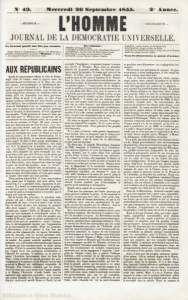 -SCLSNCE.- ' -SOLI DA NITR.- JOURNALDELADEMOCRATIUENIVERSELLE. ~• .lcnarnal parai& une fol■ 1u1r ■emaine. Toutes lettres et correapondances doivent être affranchies et adressées• l'Admi11i1tration du journal l' llomme, à Jer1ey. - Les manuscrits dépo~és ne seront P"!I rendus. AUXREPUBLICAINS Aprèa de gigante8qnes efforts, la ville de Sébaatopol vient de tomber, mais la guerre entre les gouvernements occidentaux et le Tzar est, plus que jamais, irrh·ocablement et indéfiniment prolongée, car il est impossible à la Rusiie de traiter nprèi une ausii éclatante défaite. sans déchoir jusqu'au rang d'une puissance de troisième ordre, <le même qu'il est impossible aux deux gouvernements alliés de poser à la paix, en face d'une opinion publique enhardie par une vfotoire qu'~lle croit décisiYe, des conditions moins onéreuses. L.i chute de Sébastopol n'e11t,en consfquence, à noj\ yeux, que le premier mot <l'une guerre générale dont le dernier, le dénouement, <levrait appartenir nux peuplc!'I. Voilà pourquoi le moment nou!'I parJît venu pour la Démoçratie europét-nne de Me reconi4tituer Pn unf'.'puissante unité, de !!e poser en foce de ses ennemis, et d'a~-ir. Et nous venons le dir0 aux Républicains de tous les pays avt'c l'autorité que nous donne, non pas notre indifférente personnalité, mais la cotn·iction que nou~ exprimons un sentiment qui s'agite et frémit au fond de toni les cœur!!, et la ferme déterminatiou de ne pai faillir à nos frères, si nos frères répondaient à 11otreapµel. Il fa•1t à tout granù mouvement la concP.ntration d'où parte une initiative, une main qui lève le drapeau de la marche, une voix qui crie : c:'est r heure! Nous sommes cette voix, cette main. Si la majorité du parti reconnaît $On <lra• peaa dans celui que nous élnons, 11eille peuse que le vrai e11tdans ce que nous allous dire, il est de son devoir de nous seconder. Sentinelles avancées de la Révolution. nous disparaîtrons ditns les rangi le jour du t·t!veild~ peuple,s; mais, cc réveilnons en attestons l'histoire dei six dernièreR anné<'s-n 'anra lieu que le jour où l'unité sera fondée danKle camp révolutionnaire, et c'est pour essayer de fonder cette nnit~ que nous parlons. Nous parlons aujourd'hui et nous nous tai~ions • hier, parce que le langage que nous allons tenir aurait été, il y a quelques mois, imprudent et prématuré. Il y al'ait, au commencement de la guerre, des illusions que le temps seul pouvait dissiper; il v avait de gravea enseignements à recueillir que le temps i-1eulpouvait ttmener. Sur le terrain des principes, la question euron~enne est une : Libert4 pour tous, association jraterrulle ch tous: c'est là le droit; c'est le but. Sur le terrain dufait, des moyens, la question offre deux a!llpocts: celui dei nationalités, des peuples qui, comme l'Italie, la Hongrie, la Pologne, ont une existence à revendiquer contre l'étranger qui les opprime; et celui des peuples qui, comme la France, étant en pleine posiession de la patriè, n'ont qu'à en poursuivre, contre l'u,mrpatiou, le développement régulier par l'organisation de la souveraineté du peuple. Pour les premiers, la Révolution, c'est la guerre : il leur faut des alliés. ou dei chances plus ou moius favorables ; pour les seconds c'est un travail purement intérieur; il ne s'agit pour eux que d'être unanimes et de vouloir. La g·uerre actuelle semblait pouvoir présenter aux nationalités démembrées des chances de succès qui leur auraient rendu la fiche moins péuible. C'était la question italo-hongroise aplanie par l'appui forcé des puissances occidentales, si l'i'1entité du principe, la tradition ou la peur jetaient f Autriche ouvertement dans les brai du Tsar: c'était l'intérêt du ,ucc,s poussant les gouvernements d~Angleterre ~t de France vers le seul point où la,Ru11sie soit réellement vulnérable : la Pologne. Ces illllsions n'étaien~ pa1 les nôtre,. Nous savion~-que pour prôter tout l'appui potsible il la Ruasie, l'Autriche n'avait besom que de maintenir ~ne apparente neutralité ; nous savions que jamais l'homme du· 2 Décembre et les ministrè9-qui. nprès avoir 88Crifié Rome t>t Pesth, lni ont On •'abo11ne 1 JERSEY, 32, Roseville Street. LONDRES, à l'Office du Journal, 50, Castle Street, Berners St. LIVERPOOL, chei B. Colin, 3Z, Myrtle Street, South. BELGIQUE, Lecomte, rue ùes Malades, à Bruxellesi. ESPAGNE, C~aimir Monnier, libraire à Madrid. accouplé l'Angleterre, n'o11eraientremuer le suaire qui couvre la Pologne. Mais, dans la première période de la guerre actuelle, ces illusions existaient parmi les peuples; le temps seul pouvait les effacer. Il fallait, qu'en voyant l'Empire traîner pendant plus de dix mois le drapeau de la France dans la boue des chancelleries autrichiennei, en entendant tomber, de la bouche des ministres anglais ces paroles impies: "l'insun·ection de la Hon_qrie serait un mallteu.r;il y aurait de .<Jraveisnconvérdens à ce que Ronie fût libre; c'est avec le concow·s de r Autriche que le progrès de l'Italie se fera, et que la J>olognepourra rece1voirun jour faumône d'un peu de liberté;•• il fallait que les nations appris. sent que tout espoir fondé 1mrla guerre des cabinets est un rêve füneste ;- que maintenir le statll quo est le but des i;:-ouvernements occidentaux ; qu'entre le camp de la liberté et celui de la monarchie il n'y a ele contact possible que celui de la luttf-l,et que c·est uniquement par le sang de uos veines que nous co11querronsnotre droit. - Or, ~ous ce rapport, nous le croyons, l'enseigne• ment est aujourd'hui complet. Il n'y a plus de fantômes sur notre route. N ou~ parlons à des peuples désillusionnés. Il y a plus; à travers cette guerre impuissante, deux grands faits se dessinent quo le temps pouvait seul constater, et qu'il importe de signaler. Le premier, c'eit la force de la Révolution avouée par ses enuemis. _ En deux ans, la grande République fran