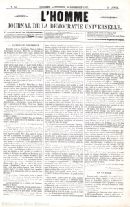 L'HOMME.-VENDREDI, 28 DECEMBRE 1855. portation des "individus dangereux " sur la demande de leurs (?) gouvernements respectifs. On .pourrait ajoute~·~ ces avertissements la conversation authentique entre le mm1stre des affaires étrangères (comte '\iValeski) et un parent rapproché de Victor Hugo, dans le cours de laquelle le mi_ni~!re déclara savoir que le gouvernement de Palmerston avait 1mtention cleprésenter l'alien Bill au Parlement,-ajoutant que Lord Clarendon et lui même (Waleski) étaient parfaitement unis d'esprit et d'intention. . Certes, si l'homme bien averti est bien armé, le peuple doit être bien préparé à combattre et à empêcher toute tentative d'alien Bill. Malheureusement, l'apathie politique et l'oubli des devoirs publics sont tels que, en dépit des avertissements ci-dessus, le ministère peut à ce moment compter sur la facilité qu'il trouve à abroger notre ancien droit d'asile, malgré les meetings de Londres, Newcastle, Glascow, etc, Des meetings publics qui n'ont pour résultat que quelques résolutions sont presque une dérision, et le pouvoir s'est habitué à dédaigner ces populaires exhibitions. Ce n'est qu'en lui faisant bien voir que le peuple est prêt, que le pouvoir peut être corrigé de ce dédain. Il faut que le gouyernement comprenne ,bien qu'on ne permettra pas l'alien Bill, qu'une telle mesure, s'il la propose, éprouvera une résistance complète par tous les moyens - quelque péril qui en résulte pour le gouvernement et pour l'alliance française ! Les meetings publics, tenus pour protester contre les expulsions de Jersey et contre les menaces d'alien Bill, devraient désigner des comités pour veiller sur le droit d'asile et prendre les mesures néce;issaires pour la protection de ce droit. Dans le cas où un alien Bill serait porté au parlement, une délégation nationale devrait à l'instant même se réunir à Londres pour exercer une pression sur la législature et la contraindre au rejet d'un tel Bill. Les comités dont j'ai parlé devraient être autorisés à choisir de tels délégués, et pour les villes où des meetings ont eu lieu, telles que Londres, Ne,;castle, Glascow, etc, les comités qui ont réuni ces meetings pourraient eux-mêmes choisir des délégués. Il serait trop tard après la présentation du Bill pour réunir des meetings pour protester et élire des délégués, car de tels Bills passent toujours dans l'espace de peu de jours. Pour que l'action publique soit productive, elle doit être prompte. Un délai accordé par le peuple assurerait le triomphe de l'ennemi. Ce n'est pas seulement Newcastle, Londres, Glascow, etc., qui doivent prendre la parole, elles doivent être imitées par toutes les grandes villes de l'Angleterre, et doivent faere savoir à Lord Palmerston et à son impérial car.fédéré que le peuple Britannique ne permettra de soumission à aucun pouvoir étranger et moins qu'à tout autre à ceux de Bonaparte et de François-J osepé; qu'il ne permettra aucun alien Act; qu'il restera debout pour défendre et protéger tous ceux qui combattent et souffrent pour la justice et pour le droit. G. Julian HARNEY. 4 Décembre 1855. TABLETTES DE L'EXIL. Lors de l'attentat de Bellemare (qui, on se le rappelle, tira un coup de pistolet sur l'une des voitures impériales à l'entrée de !'Opéra-Comique, et qui par suite fut déclaré fou et envoyé à l'hôpital de Bicêtre) le gouvernement craignant que cet attentat ne fut le résultat d'une conspiration, ordonna l'arrestation d'un grand nombre de jeunes gens appartenant pour la plus grande partie à la jeunesse des écoles. De ce nombre se trouvait M. Ranc, fils aîné d'un homme respectable, ancien magistrat, ancien juge de paix dans le ressort de la Cour de Poitiers. On ne trouva aucune preuve contre ce jeune homme complètement occupé alors de ses travaux littéraires. Néanmoins, en dépit de cette absence de preuves M. Ranc fut retenu eu prison au dépôt de la préfecture de police. Quelques mois s'étaient écoulés sans que le prisonnier pt1t obtenir soit des juges soit sa mise en liberté, quand, il y a quelques jours, un commissaire de police vint le trouver à la prison et lui signifia une décision du conseil des ministres en vertu de laquelle M. Ranc au lieu d'être mis en liberté devait être transporté à la colonie pénitentiaire de Cayenne. M. Ranc père qui en ce moment se trouvait à près de deux cents lieues de Paris, informé par le télégraphe de la décision qui frappait son fils, revint immédiatement et s'adressa à l'un des ministres pour obtenir le rapport de cette sentence ; mais la décision étant irrévocable il demanda que son fils fût transporté non à Cayenne-pays éloigné dans un climat mortel-mais en Algérie, colonie plus saine et plus rapprochée. Le ministre refusa, alléguant que l'Afrique était comme la France infostée de sociétés secrètes et que le gouvernement était résolu de n'y plus transporter personne. Le père alors demanda que son fils ne. fut pas transporté mais simplement banni en Amérique. Le ministre répliqua que l'on accorderait i M. Ranc le banissement comme commutation clepeine, à la condition qu'il renoncerait, par une déclaration écrite et signée de lui, à ses opinions républicaines. Le père transmit ces conditions à son fils qui refusa noblement une déclaration qui eut été une apostasie. En conséquence l'ordre va être exécuté et M. Ranc, jeune homme de 24 ans va être transporté à la Guyane. Le navire doit quitter le port de Toulon du 15 au 20 courant, et on m'assure qu'un certain nombre d'autres personnes arrêtées à la même époque vont être également transportées à la Guyane sans jugement. Cette monstrueu~e tyrannie q?i supprime les hommes et cumule tous les cnmes est, depuis quatre années, la loi, le gouvernement de la France : et cette Providence-là ne se permet pas seulement l'horrible, elle descend jusqu'aux plus petits détails; elle se