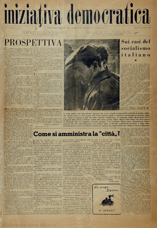 Settimanale di orientamento politico, uscì con soli otto numeri tra il 1951 e il 1952, ma rappresentò un passaggio decisivo nella storia della sinistra giovanile democratica cristiana e dell’intera Dc, dall’abbandono della politica da parte di Dossetti, all’omonima corrente del partito che dal 1954 inaugurò una nuova fase.